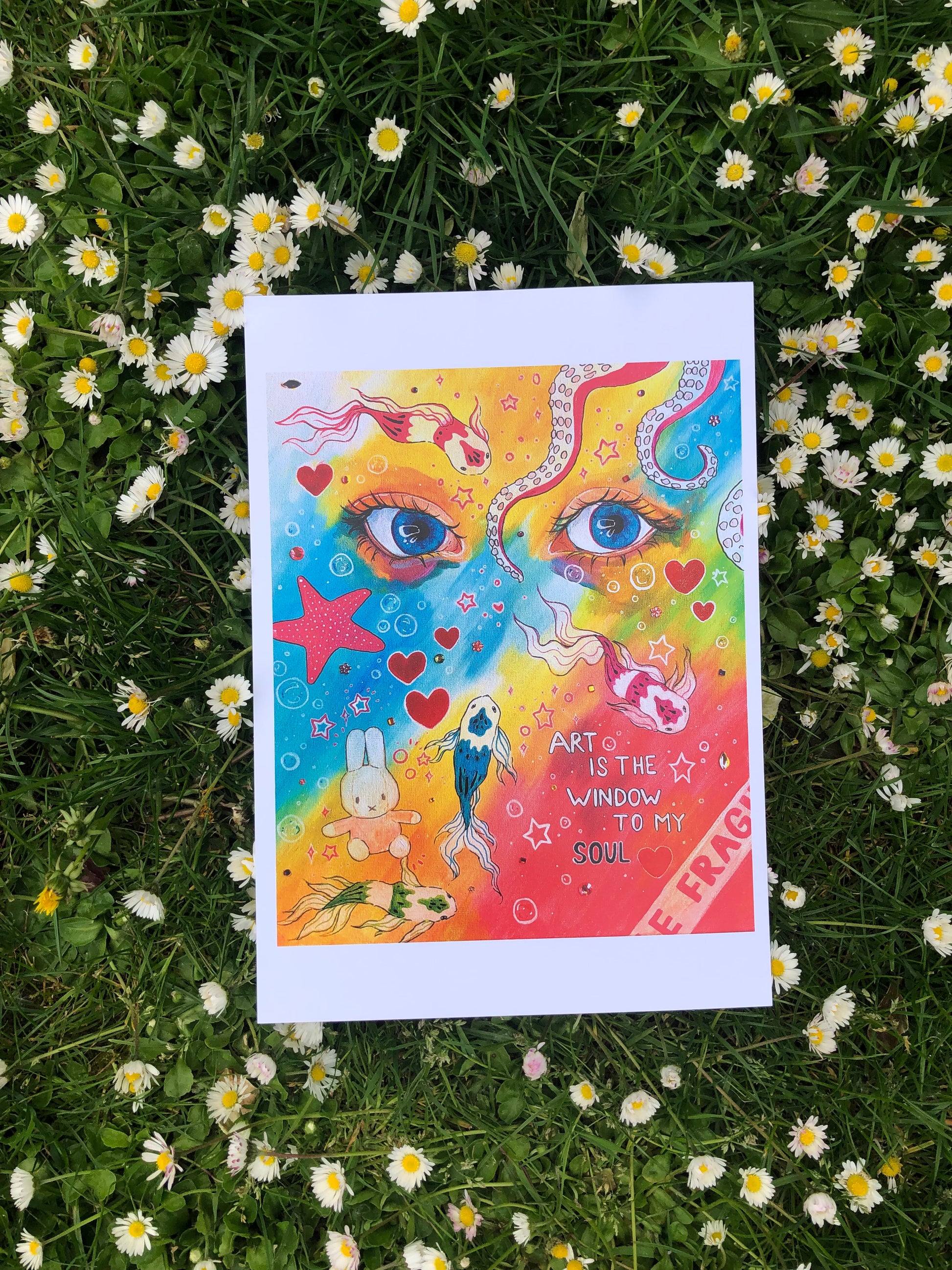 A4 print of my original painting - Art is the window to my soul - inspired by my inner childs dreams of being an artist.
