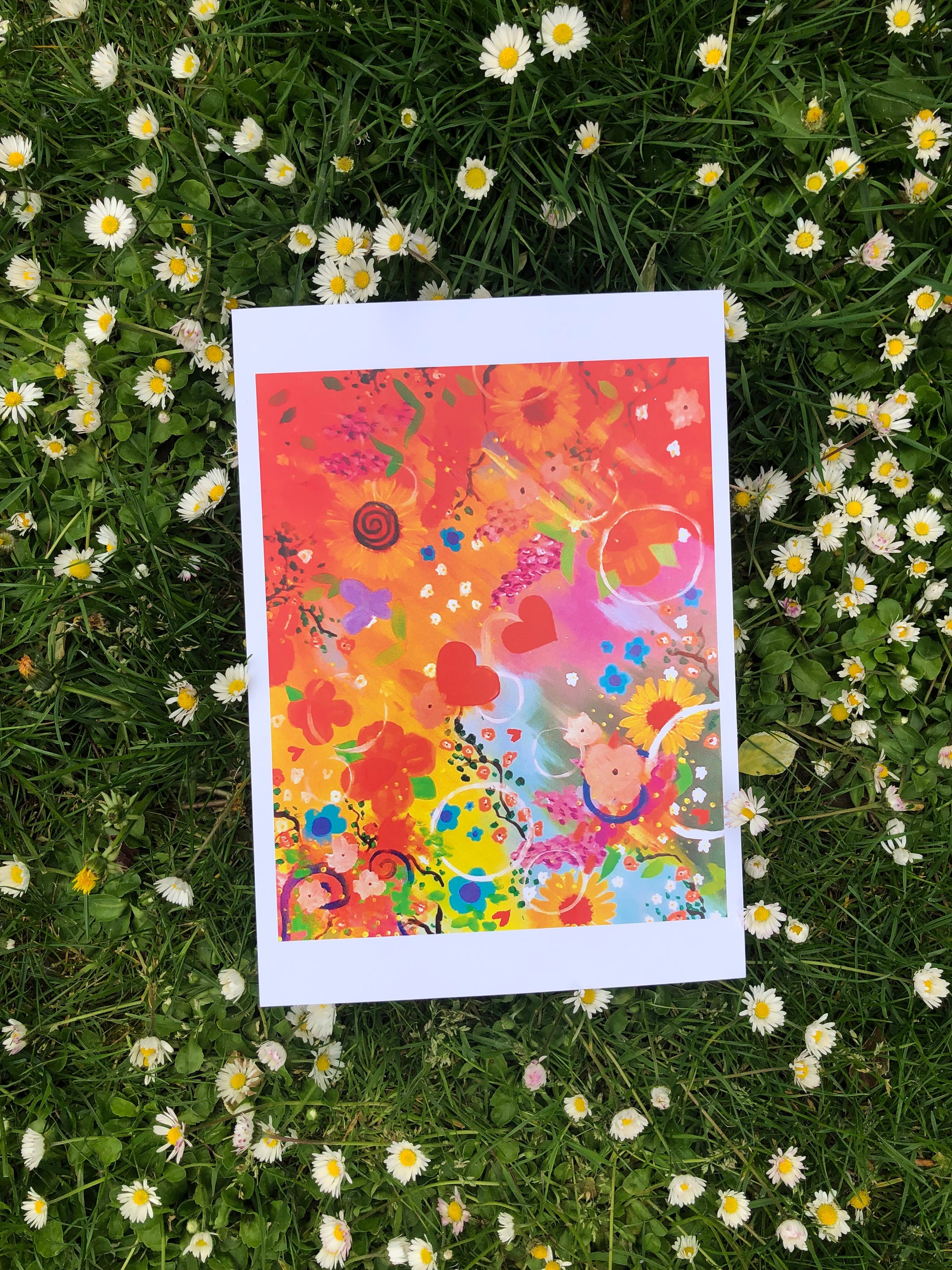 High quality A4 art print. Painted this inspired by the love I was experiencing for the world and my partner. I wanted to express this with vivid colours and expressive paint strokes.
