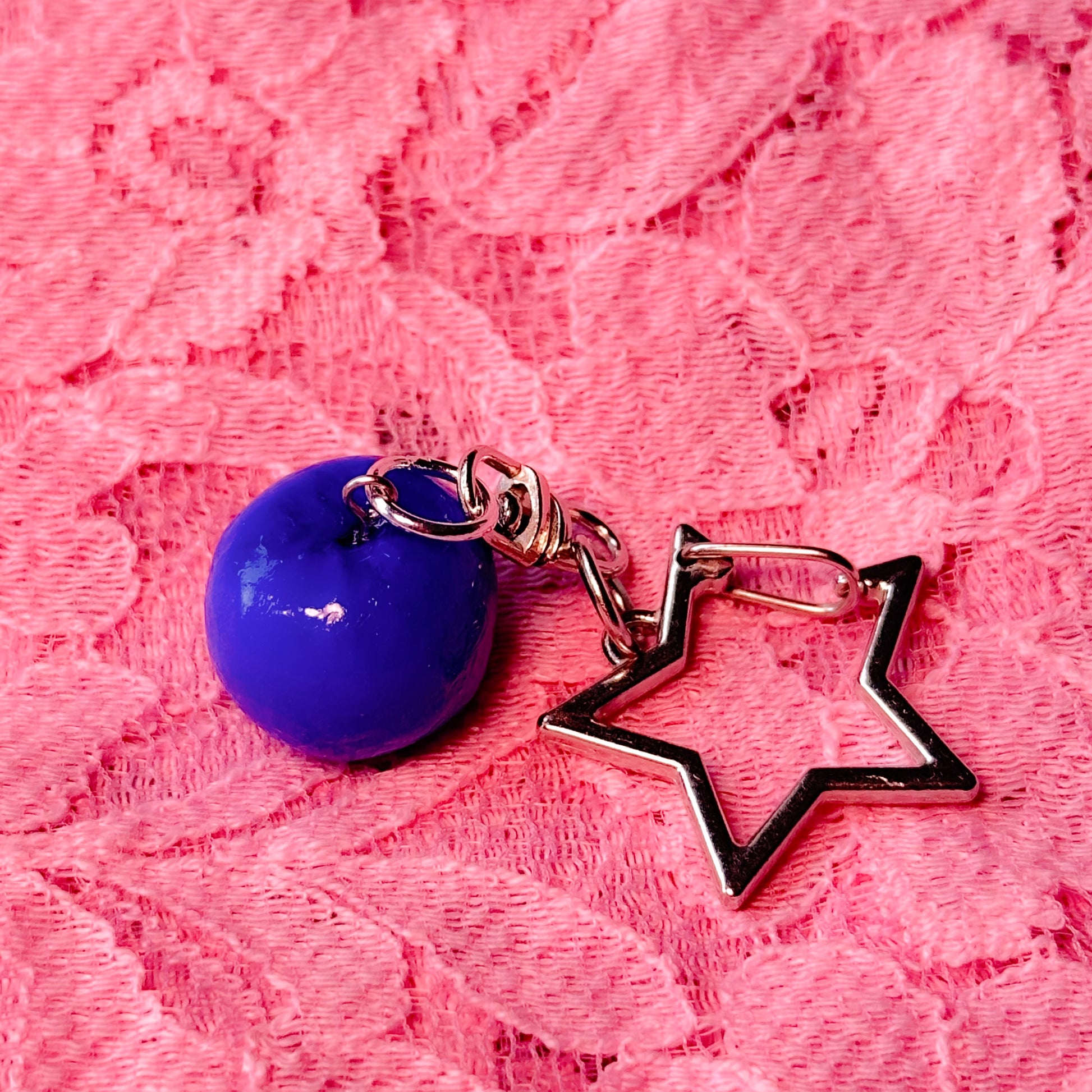This handmade blueberry keychain charm is designed to bring joy and beauty into your daily life with a cute silver star keychain. Add to your keys, bag and more.