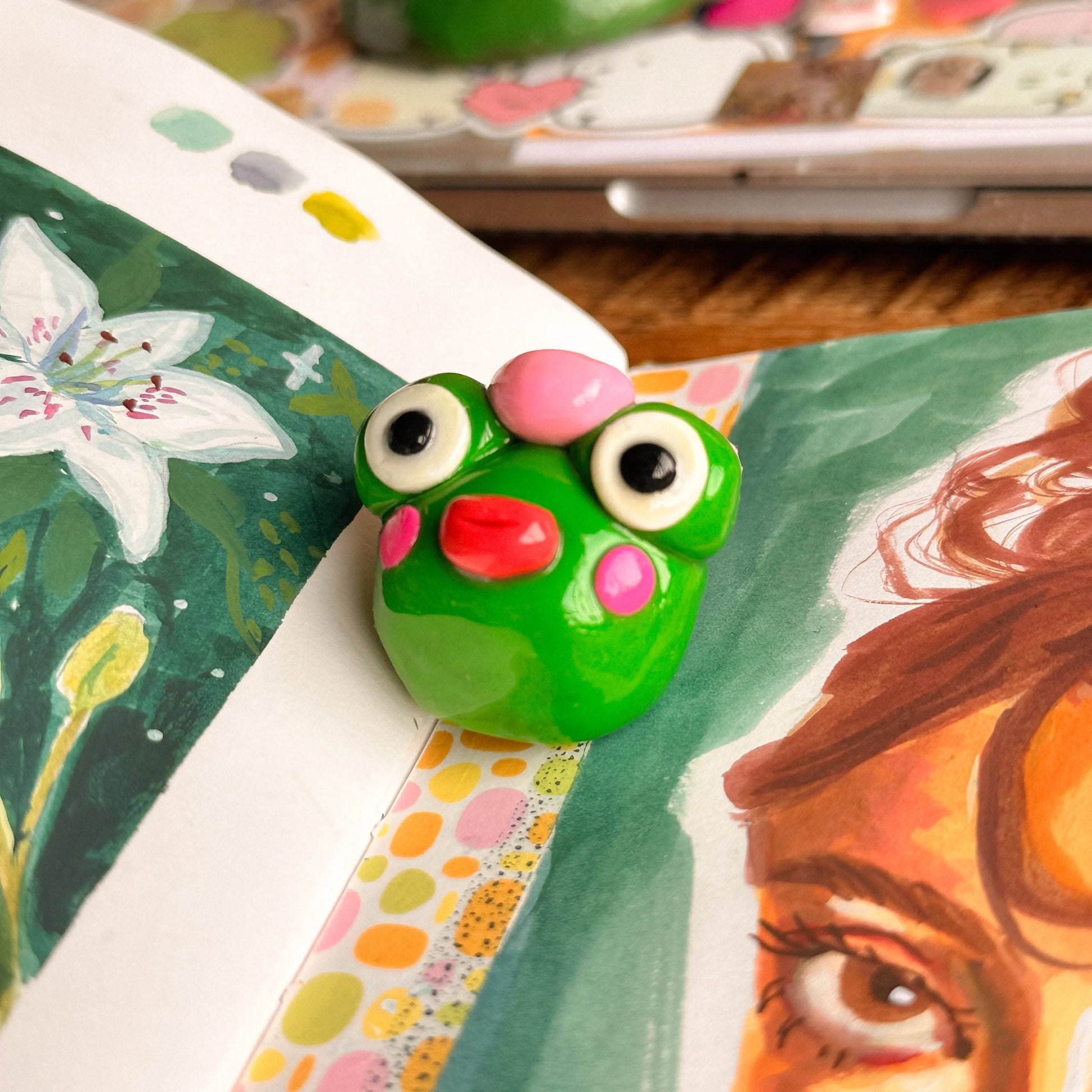 Add this cute frog besite to your desk, bedside table, dashboard or more!