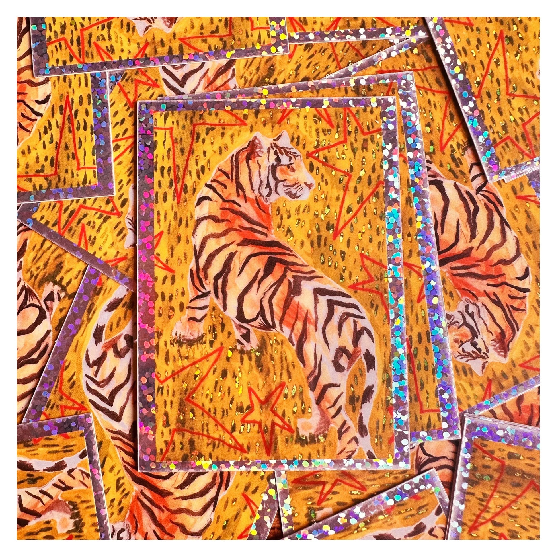 Decorate anything with this glittery tiger sticker!!! It is waterproof so you can put it on your water bottle :D