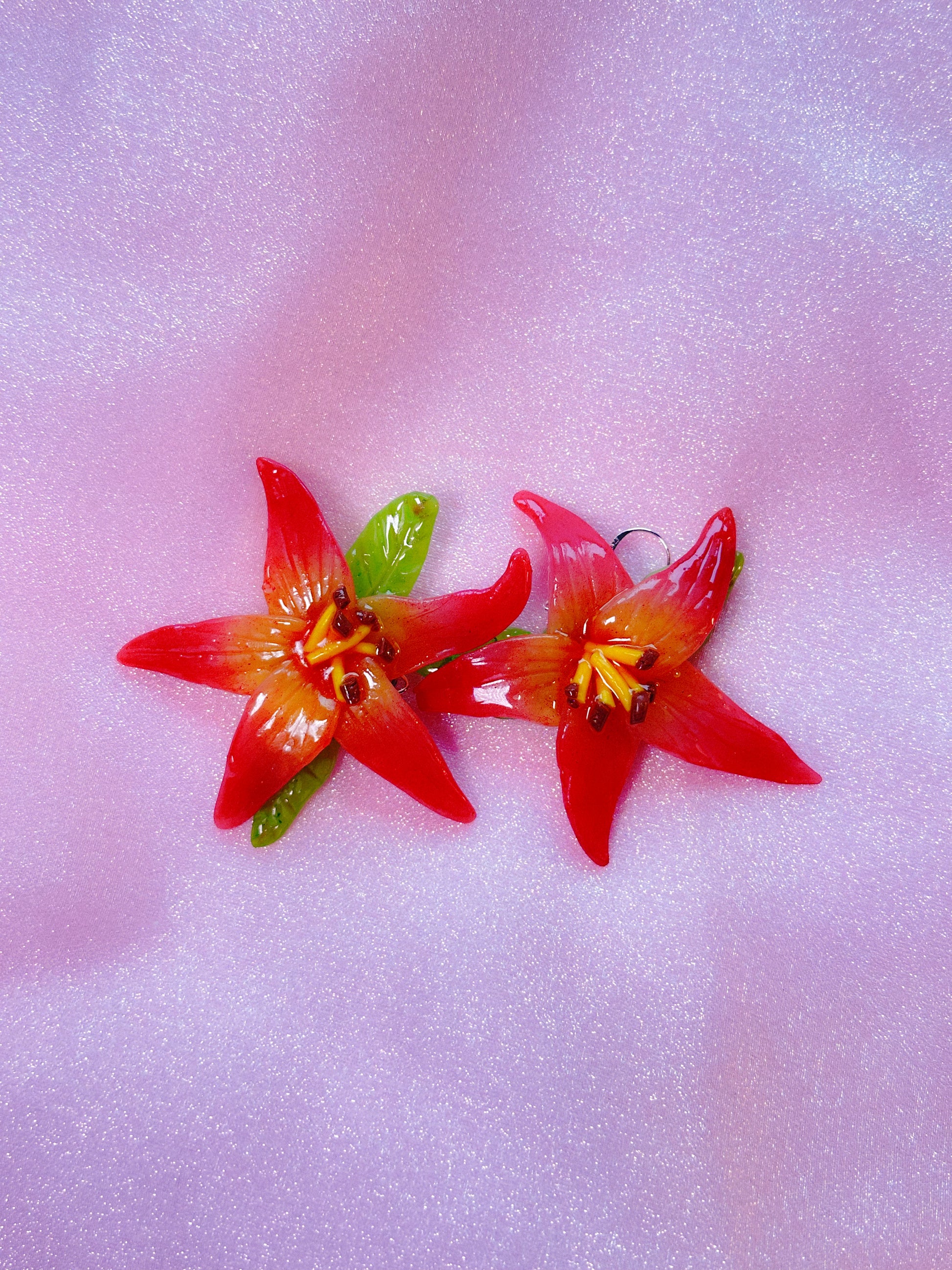 Handmade Lilly flower earrings, perfect for summer. Matching necklace available.