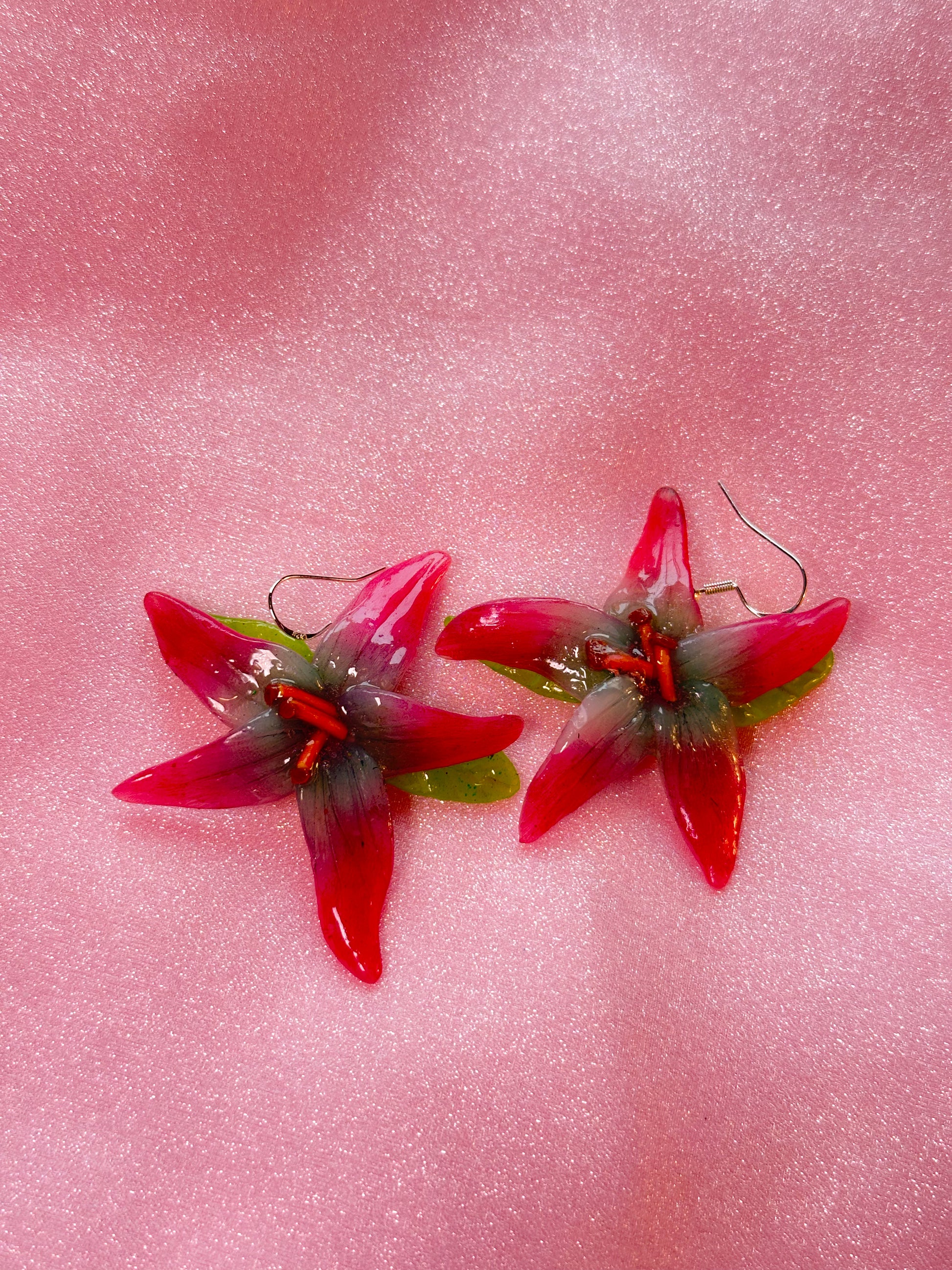 Handmade Lilly flower earrings, perfect for summer. Matching necklace available.