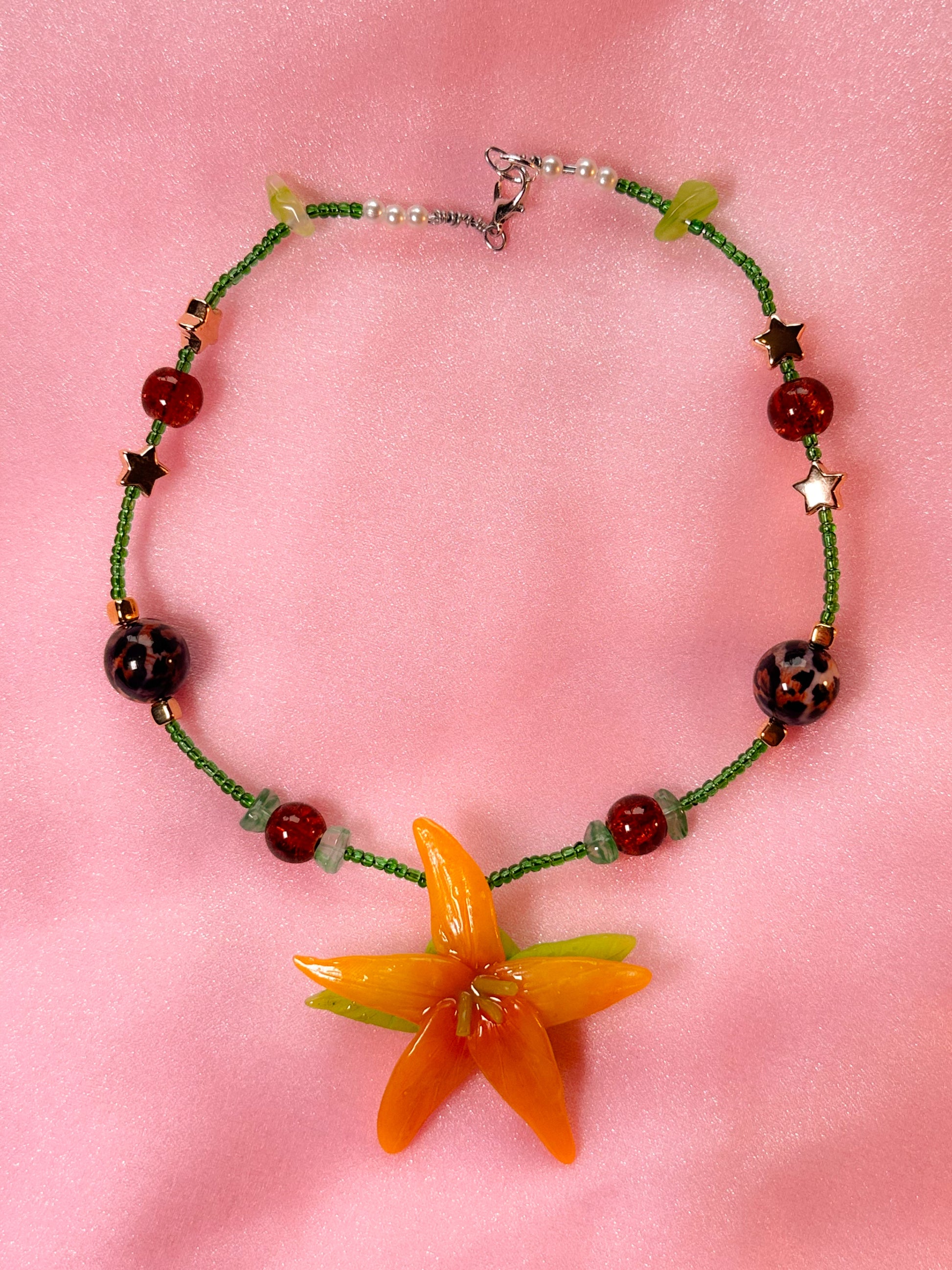 This handmade Lilly flower necklace is perfect for summer. Matching earrings available in this category.
