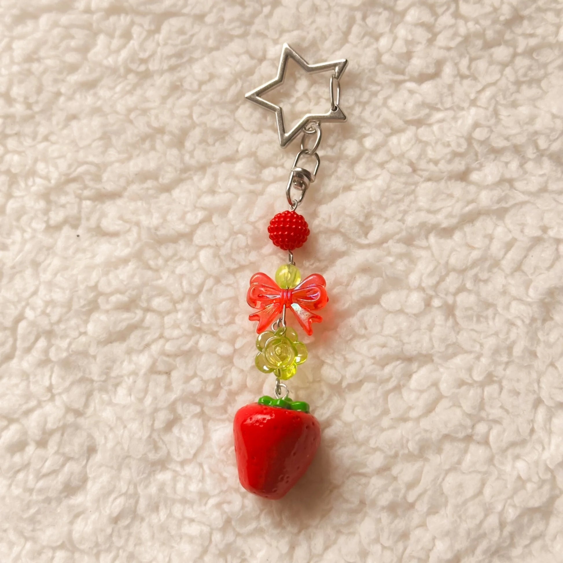 Cute handmade strawberry keychain for your keys or bag 🍓🎀