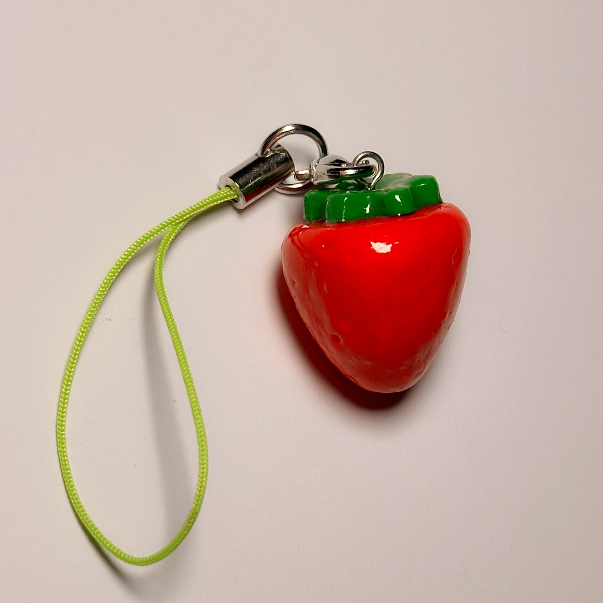Cute handmade strawberry phone charm, designed to brighten your day.